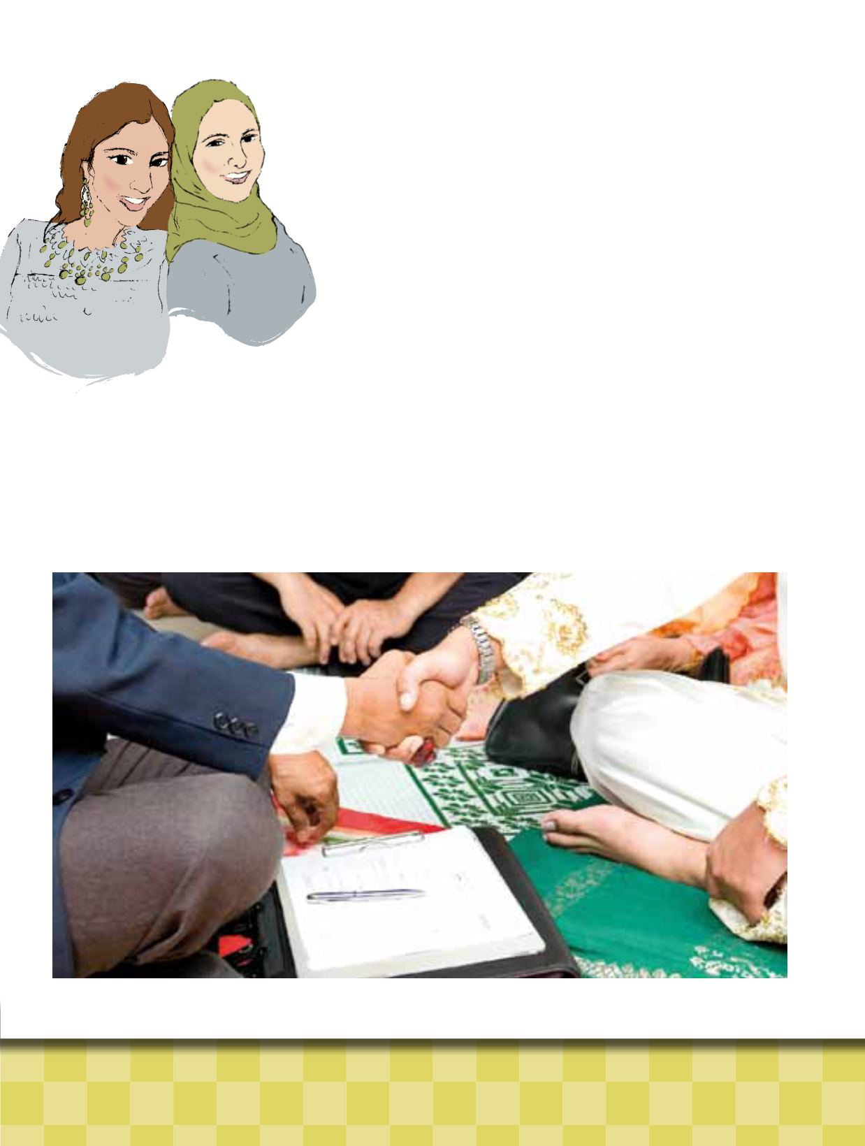 Muslimsk hjúnavígsla. Imamurin og brúðgómurin taka í hondina á hvørjum øðrum.