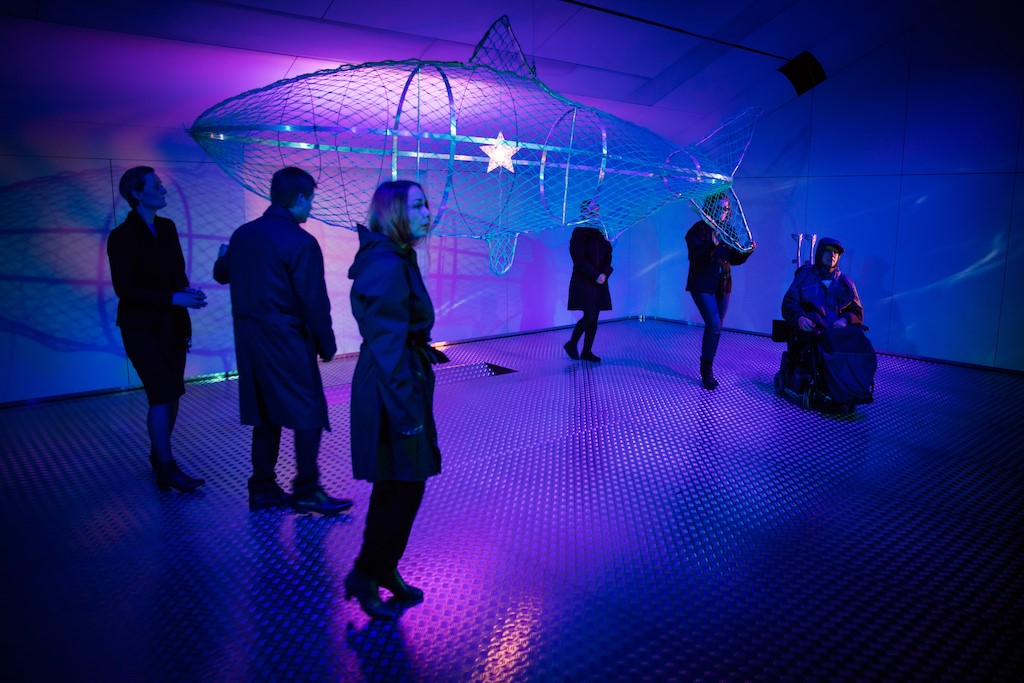 Myndirnar høgrumegin eru báðar úr sjónleikinum Havfrúgvin. Jóanes Nielsen skrivaði leikin og Eyðun Johannesen leikstjórnaði á Tjóðpallinum í 2016. Í sjónleikinum er fiskivinnan á okkara døgum karmur um vælferðarsamfelagið og teir persónar, vit møta. Høgni Heinesen tók myndirnar.