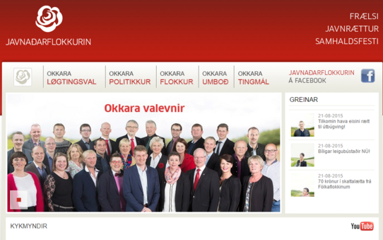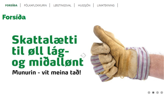 Hvat stendur á breddanum ovast mitt fyri? Hvussu skulu vit skilja henda tekst? Er hann skrivaður beint fram við bókstavum, ella er hann villingarsamur at lesa? Greið frá um tekstin og hvat tú heldur um hann. Hvat siga innsettu myndirnar niðanfyri? Hvat sæst á myndini til høgru? Hvar er henda mynd tikin? Hvat sæst aftamfyri fólkini? Greið frá hesi ímynd, sum sæst aftanfyri fólkini og um hon hveur týdning fyri flokkin. Tak støðu til um hesin flokkurin brúkar sosialar samskftismiðlar.
